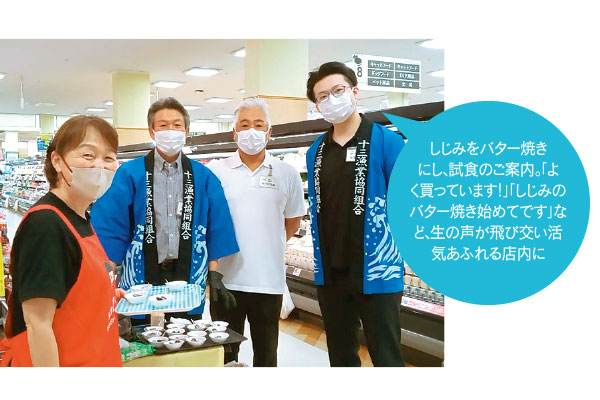みやぎ生協・愛子店で、生産者とメンバー(組合員)が一緒に「めぐみ野」青森県十三湖産しじみの推奨活動を行いました