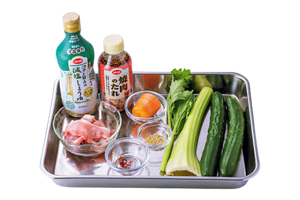 ① きゅうりは乱切り、セロリと人参は薄切りにする。すべての食材をポリ袋に入れて半日から1日漬ける。