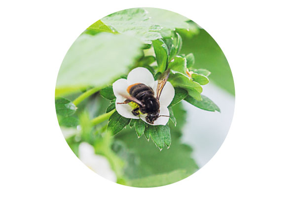 受粉の役割を担う、穏やかな性格の国産のクロマルハナバチ。ハウス内を元気に飛び回り、約1週間で受粉を行います
