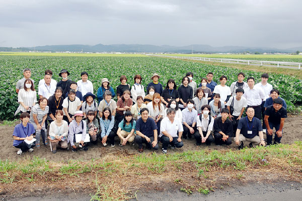 青々とした葉が輝く、8月頃の大豆畑の様子。産地交流会を通じてメンバー(組合員)との交流も行っています