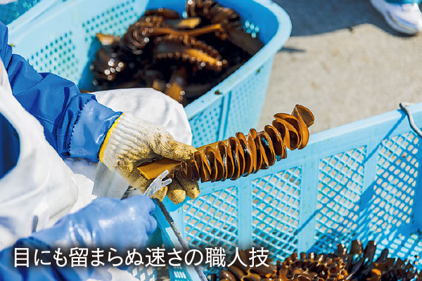 極寒の中、始まる水揚げ \真冬にピークを迎えるめかぶ/